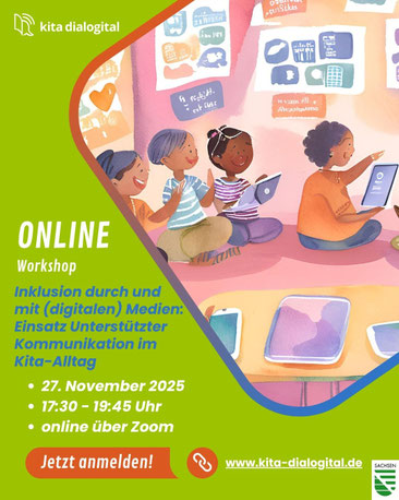 In unserem Online-Workshop im November geht es um Inklusion durch und mit (digitalen) Medien. Der Schwerpunkt liegt dabei auf der Beantwortung der Frage: "Wie können digitale Medien zur Inklusion beitragen und wie können bestimmte Tools der Unterstützten Kommunikation im Kita-Alltag Teilhabe ermöglichen?"